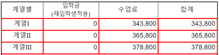 나는 이번 학기에 전공과목을 1도 신청하지 않았지만 계열 II 소속이라 365,800원을 내야한다..;;;